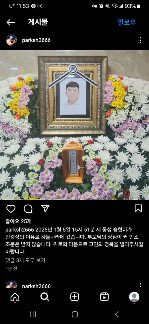 6일 오전 박승현의 인스타그램 계정에는 박승현의 형이 직접 써 올린 '부고글'이 게재됐다.